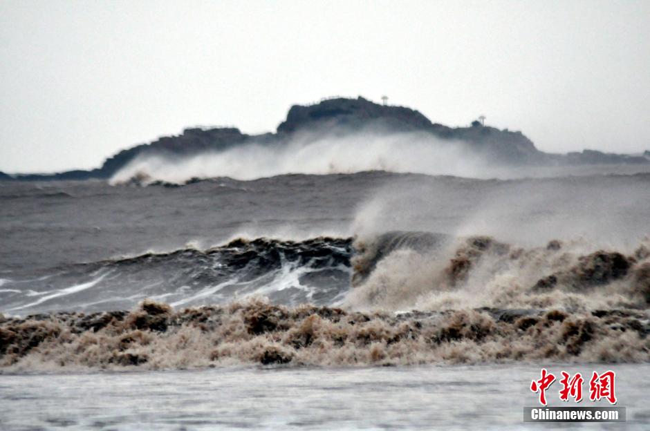 Photo shows the high waves caused by typhoon Vongfong off the coast of Zhoushan, east China's Zhejiang Province, Oct. 12, 2014. (Photo/CNS)