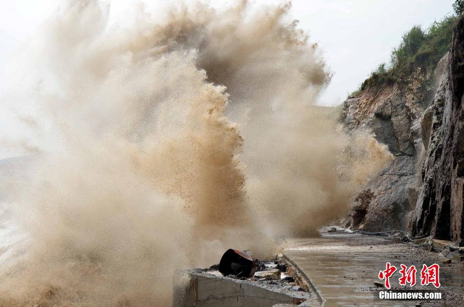 Photo shows high waves in Shitang Township, Wenling, east China's Zhejiang Province, Oct. 12, 2014. Affected by the powerful typhoon Vongfong, high waves were seen off the coast of provinces like Zhejiang and Fujian. (Photo/CNS)
