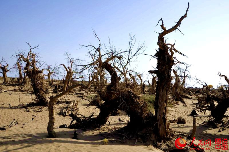 The dead forest is located in Ejin Banner, north China’s of Inner Mongolia Autonomous Region. It used to be a thick populus euphratica forest. Because of rivers diversion in history, the trees died of drought. The grotesque dead trees present a mysterious and wild scene. It is often called “the odd forest” by tourists. (Photo source: people.cn)