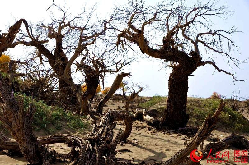 The dead forest is located in Ejin Banner, north China’s of Inner Mongolia Autonomous Region. It used to be a thick populus euphratica forest. Because of rivers diversion in history, the trees died of drought. The grotesque dead trees present a mysterious and wild scene. It is often called “the odd forest” by tourists. (Photo source: people.cn) |