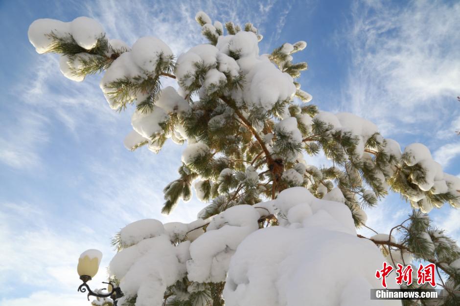 Heavy snow hit Balikun county in east Xinjiang from the evening of October 9 to the dawn of October 10. The sky became clear after snow and the lowest temperature reached minus 9 degrees Celsius. (Chinanews.com/Zhang Guojun)