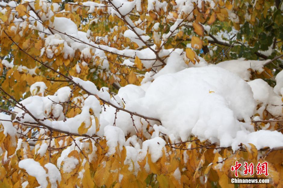 Heavy snow hit Balikun county in east Xinjiang from the evening of October 9 to the dawn of October 10. The sky became clear after snow and the lowest temperature reached minus 9 degrees Celsius. (Chinanews.com/Zhang Guojun)