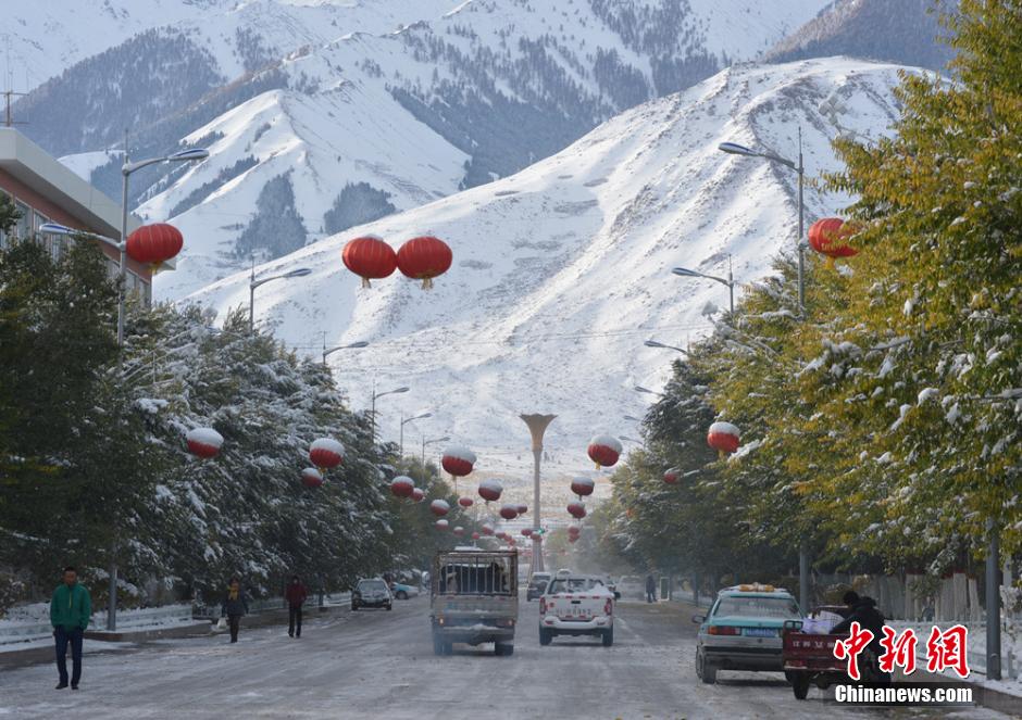 Heavy snow hit Balikun county in east Xinjiang from the evening of October 9 to the dawn of October 10. The sky became clear after snow and the lowest temperature reached minus 9 degrees Celsius. (Chinanews.com/Zhang Guojun)