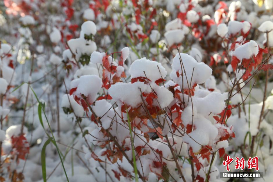 Heavy snow hit Balikun county in east Xinjiang from the evening of October 9 to the dawn of October 10. The sky became clear after snow and the lowest temperature reached minus 9 degrees Celsius. (Chinanews.com/Zhang Guojun)