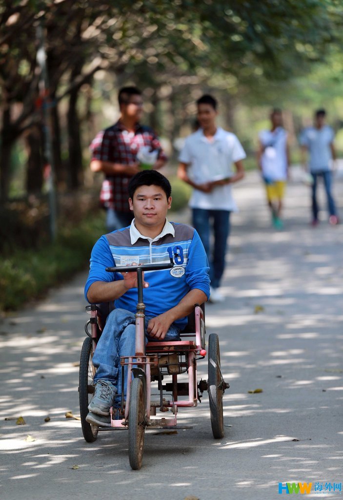 Yu Chongle, 21, from Zhongshan county, has a pleasant personality, and everyone calls him Xiaole. When he was four years old, a high fever resulted in a deformity. “I can only stand up for 10 minutes at most," he says, "and I can't walk normally.” When Xiaole was in second grade at primary school, his parents went to the south to make a living helping others grow vegetables, so he became a 'left-behind' child living with his grandparents。 (Photo/Haiwainet) |