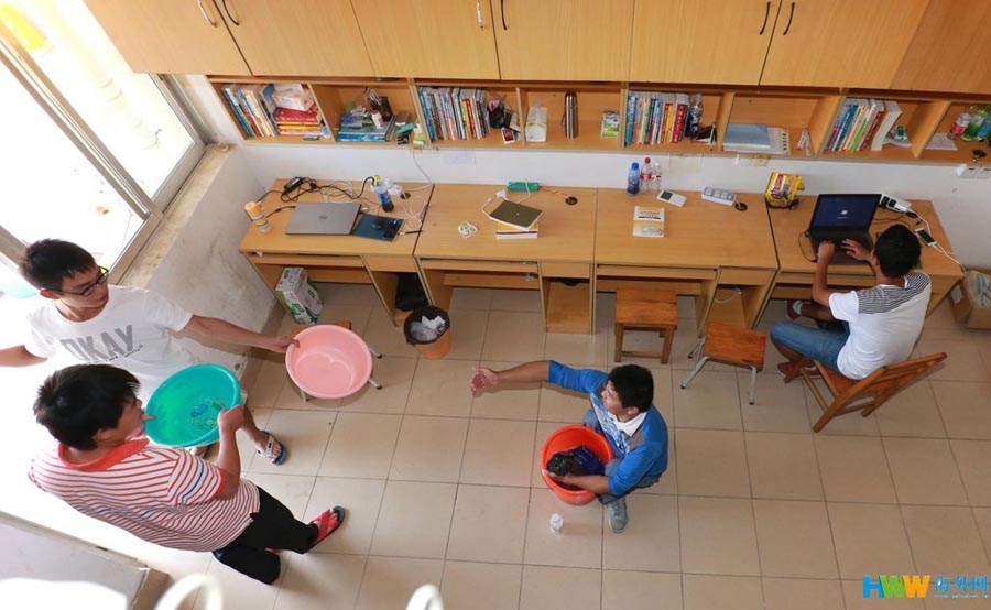 Many students were moved by Xiaole’s strong spirit and determined personality. Xiaole explains that for six years in junior and senior high school: “There were always classmates willing to help me with my meals; sometimes when the food got cold, they would help me to find a way to heat it up again.” In July, 2014, Xiaole was admitted to study law at Guangxi Normal University. (Photo/Haiwainet) |