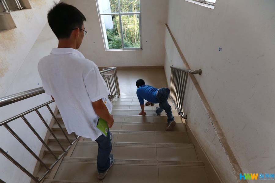 Facing so many difficulties, Xiaole is always thinking of ways to overcome his problems. "It's not that we take care of Xiaole," say his classmates. "He's the one who inspires us. There's never an obstacle he can't overcome. There's never a time when he's not pushing himself beyond his limits.” (Photo/Haiwainet) |