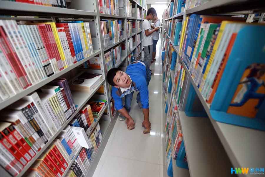 October 9, 2014 was the second day of the new term for the freshmen of Guangxi Normal University Lijiang Academy. Yu Chongle, who crawled to class, became the focus of the whole school. (Photo/Haiwainet)