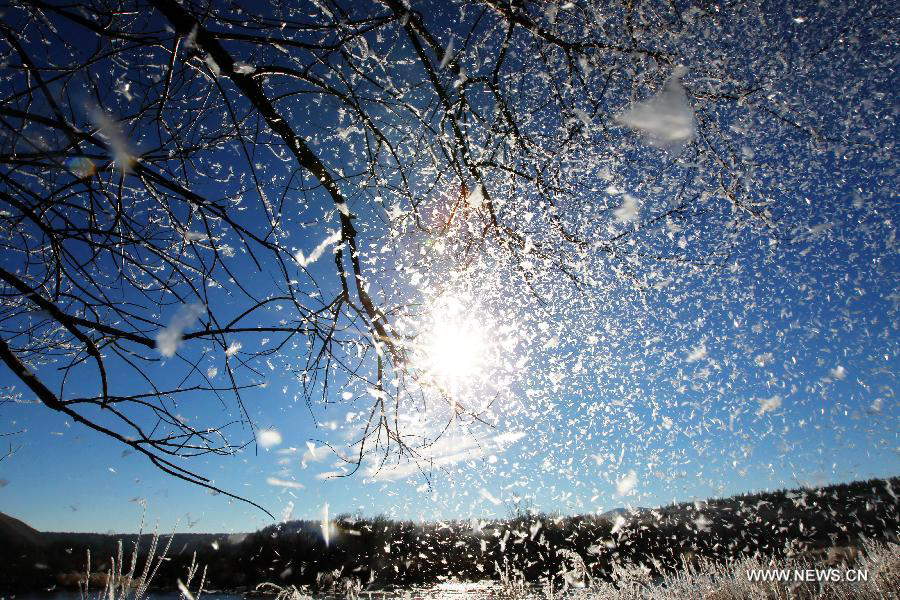 Photo taken on Oct. 13, 2014 shows the scenery of rimes in the Aershan National Forest Park, north China's Inner Mongolia Autonomous Region. (Xinhua)