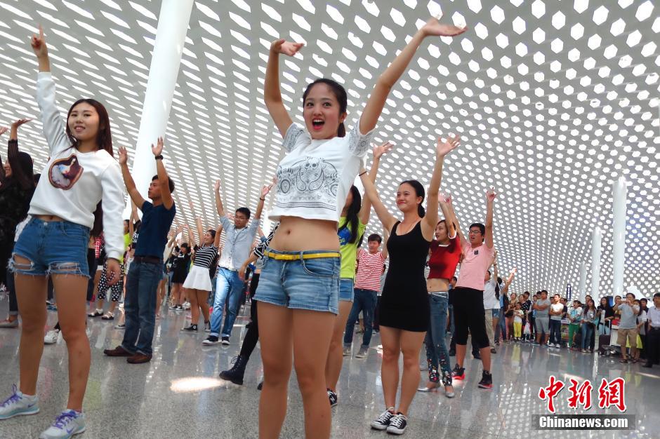 Dancers perform street dance in the departure lounge of Shenzhen Bao'an International Airport on Oct.12, 2014. The airport has witnessed 328 million trips and transported more than 9 million tons of goods in 23 years. (CNS/Chen Wen)