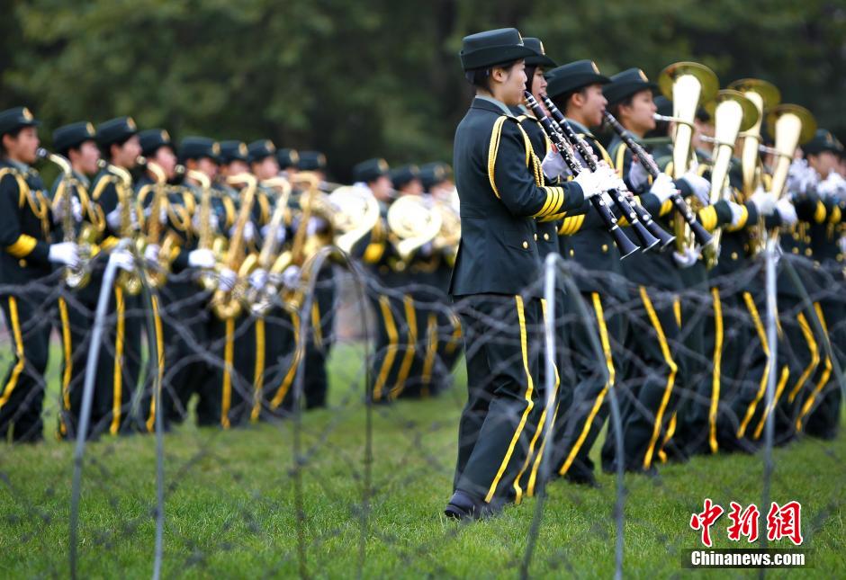 Students at Norman Bethune Non-Commissioned Officer Medical School perform medical aids and military music for attendees of China-Canada International Summit in commemoration of the 75th anniversary of the death of Norman Bethune in Shijiazhuang, north China's Hebei province on Oct. 12, 2014. (CNS/Song Jihe)