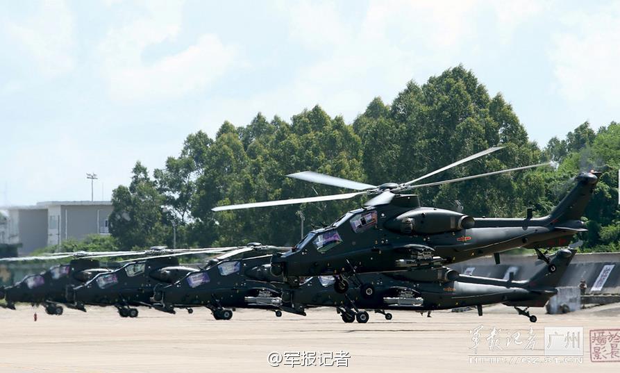 An army aviation brigade of Guangzhou Military Region conducts a drill for the Z-10 attack helicopter formation on Oct. 13, 2014. (Photo source: Microblog of a PLA Daily reporter)