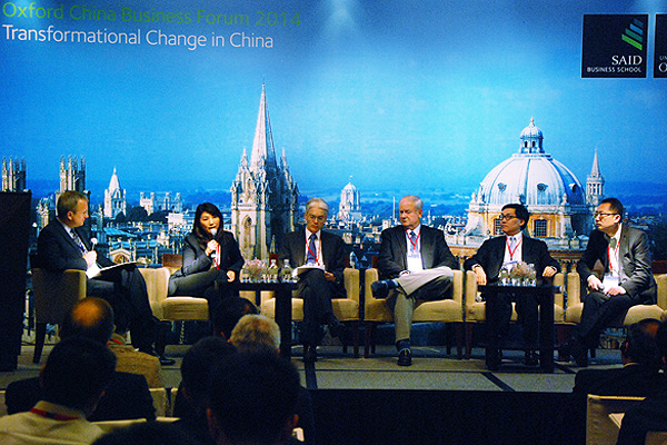 Speakers at the panel discussion at the Oxford China Business Forum 2014 on Oct. 14, 2014. (People’s Daily Online/Yuan Can)
