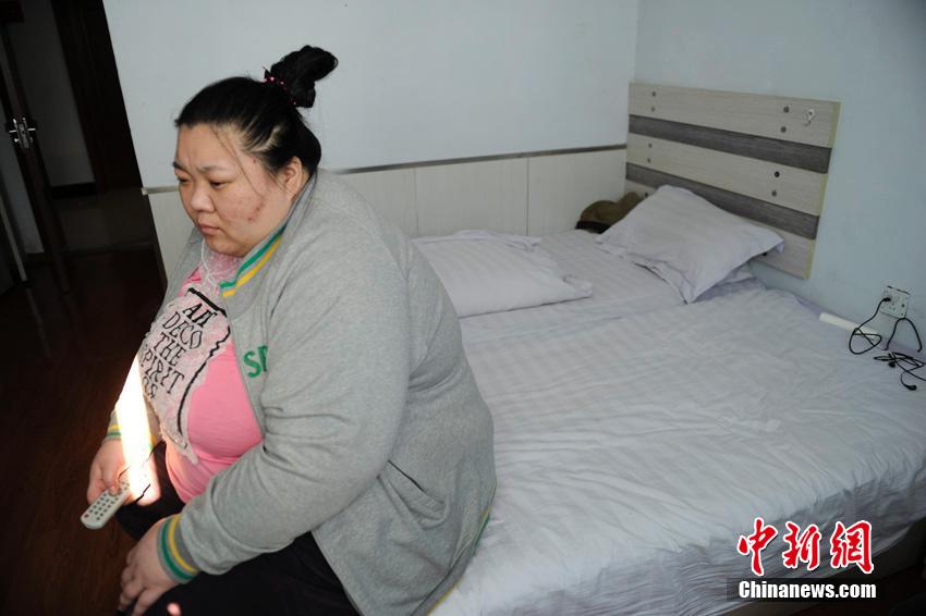 Because Liu Tinging is oversized, she has a single room at the hospital and two twin-size beds were put together as her bed. (Chinanews/Zhang Yao)