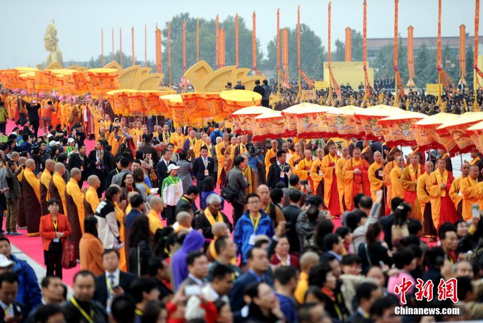 On October 16, 2014, the 27th general conference of World Fellowship of Buddhists' (WFB's) opens in Baoji, northwest China's Shaanxi Province. This is the first time that the WFB has held its general conference on the Chinese mainland.Congregating around a relic containing one of Buddha's finger bones at the Famen Temple in Baoji, more than 600 representatives from 30 countries and regions are present. (Chinanews/Zhang Yuan)