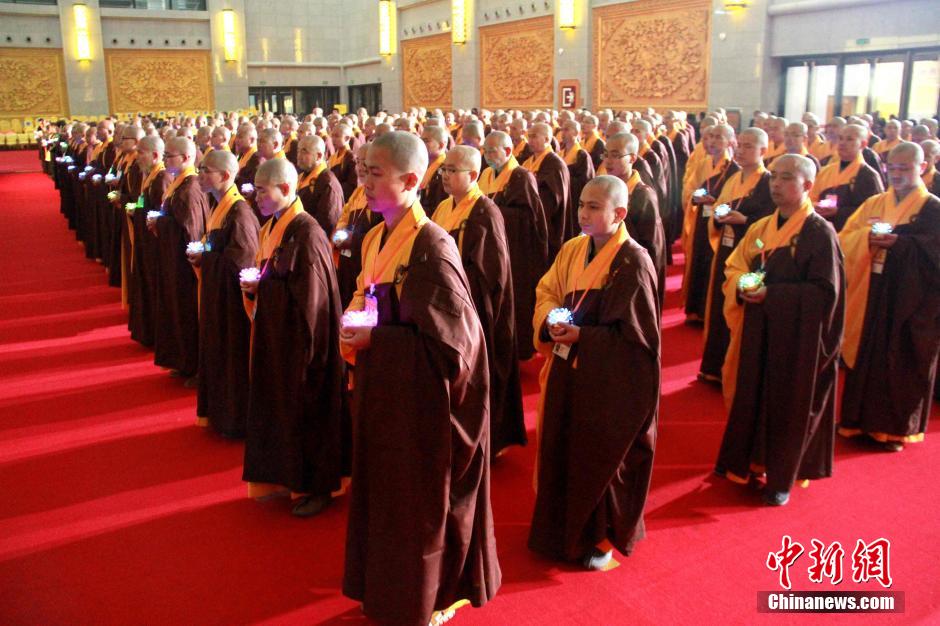 At the night of October 16, 2014, the light passing ceremony is held at the Famen Temple. Thousands of believers made prayers. (Chinanews/Zhang Yicheng)