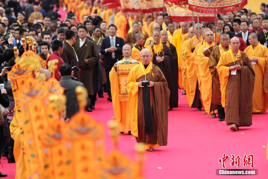 On October 16, 2014, the 27th general conference of World Fellowship of Buddhists' (WFB's) opens in Baoji, northwest China's Shaanxi Province. This is the first time that the WFB has held its general conference on the Chinese mainland.Congregating around a relic containing one of Buddha's finger bones at the Famen Temple in Baoji, more than 600 representatives from 30 countries and regions are present. (Chinanews/Zhang Yuan)