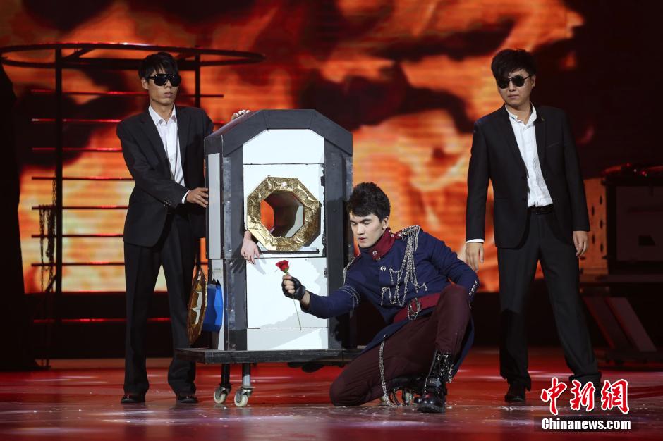 A magicain from northwest China's Xinjiang performs Magician Night in the contest on the night of Oct. 15, 2014. (CNS/Zhao Hui)