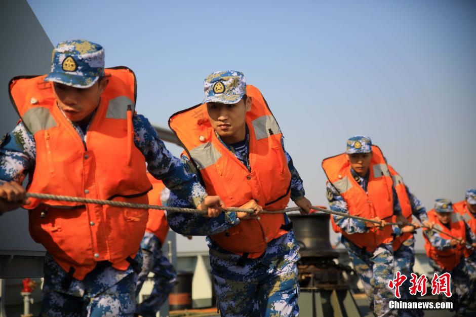 The newly-commissioned warship Quanzhou fires its main gun at the target in a maritime drill on October 15, 2014. Recently, the guided missile frigate Quanzhou of the East China Sea Fleet of the Chinese People's Liberation Army Navy (PLAN) has been engaged in coordination training with other warships of different types on various subjects including ship steering, refueling, ship towing and night navigation. This training is designed to verify the training effectiveness and speed up the generation of the combat capability of the frigate which was commissioned to the PLAN two months ago. (China News Service/Zhou Daoxian) |