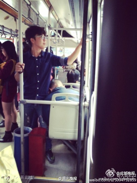 Youngster acts as 'body cushion' of napping old man aboard bus (3)