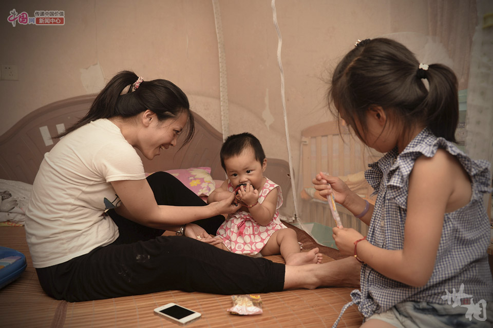Lu plays with her nieces. (China.com.cn/Lai Xinlin)