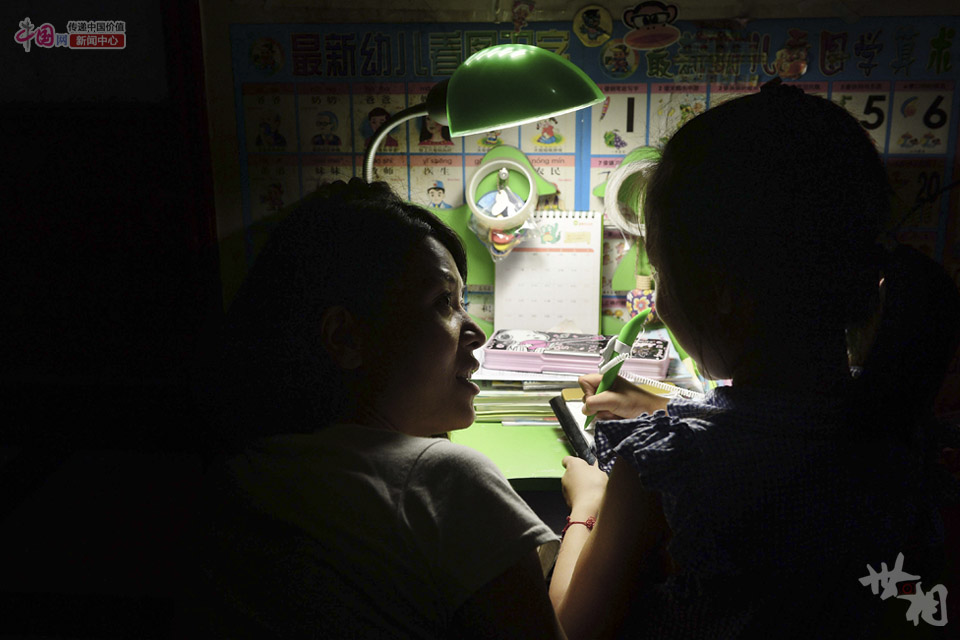 Lu helps her niece study. (China.com.cn/Lai Xinlin)