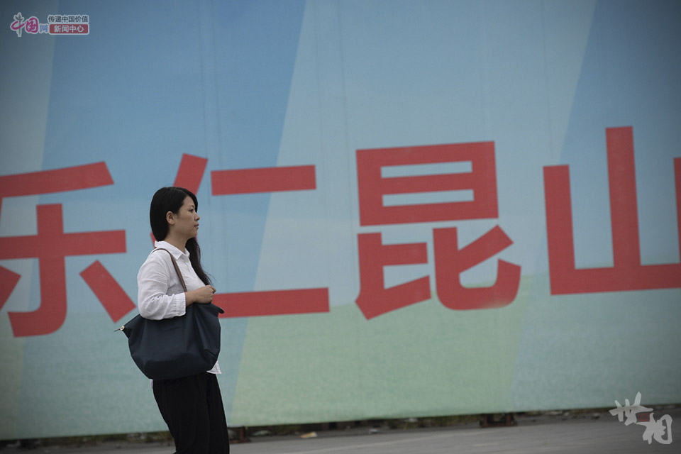 Lu walks out of Kunshan south station. (China.com.cn/Lai Xinlin)