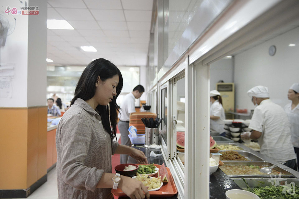 Lu has lunch at the company's canteen. (China.com.cn/Lai Xinlin)
