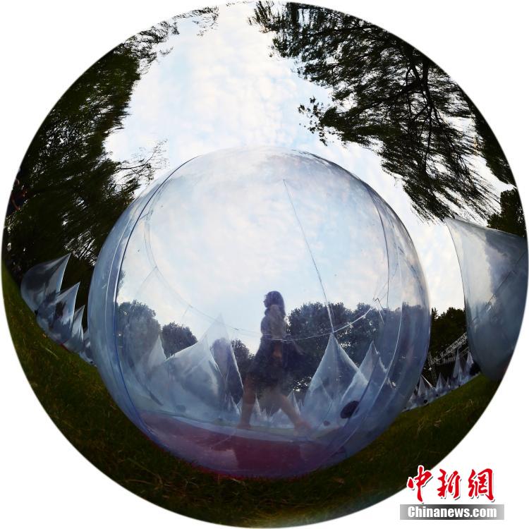 A one-week "Dancing Water Drops 2014" Art Exhibition kicks off in West Lake of Hangzhou, southeast China’s Zhejiang Province, Oct. 18, 2014. The whole group of works consists of five water drop models 12 to 20 meter in height floating on the lake and hundreds of small "water drops" placed on the park lawn, meaning "look at the world through water drops", to advocate the ecological concept of "protect water, love water, and cherish every drop of water". (CNSPHOTO/Li Zhong)