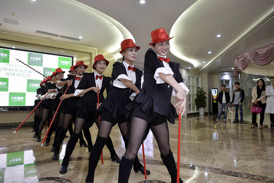 Several ladies dance Jazz in the cosmetic surgery hospital. (Photo/Youth.cn)