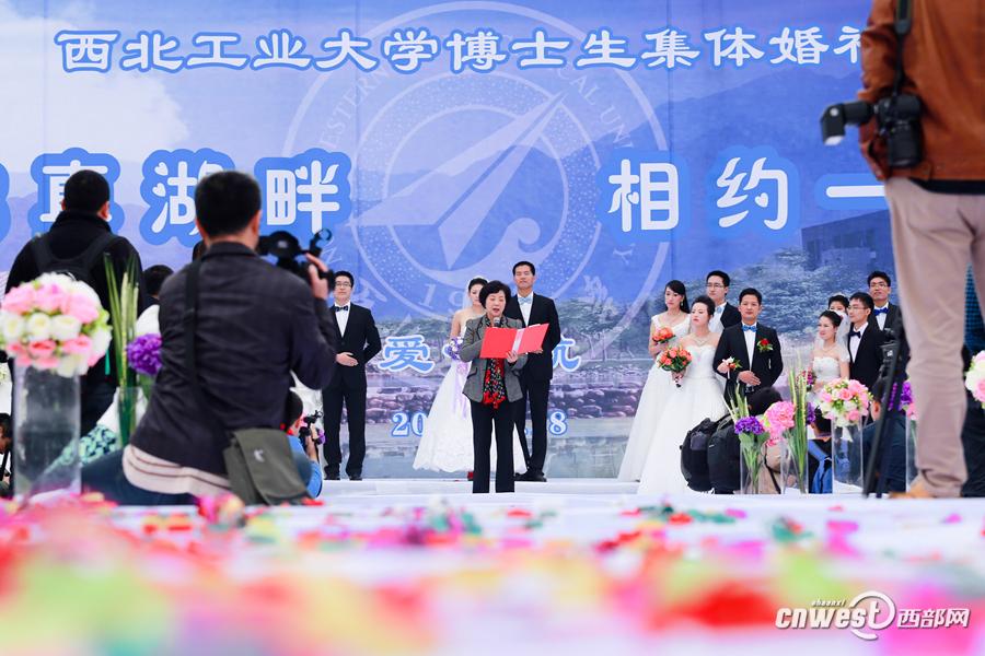 At the ceremony, the grooms and brides exchanged special wedding rings designed by graduate students of NPU, which are engraved with the letters NPU and LOVE U, as gifts from their Alma Mater.