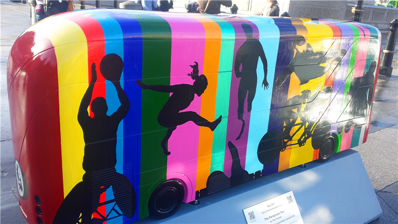 LONDON Oct. 21, People's Daily Online -- Twenty-eight New Routemaster bus sculptures were unveiled for the first time today in Trafalgar Square. These sculptures forms a collection of 60 bus sculptures, commissioned by Transport for London (TfL), which will be placed across London on four walking trails as part of the Year of the Bus Sculpture Trail. The first three trails will be installed for the public to enjoy from Monday 20 October with a fourth following for Christmas.