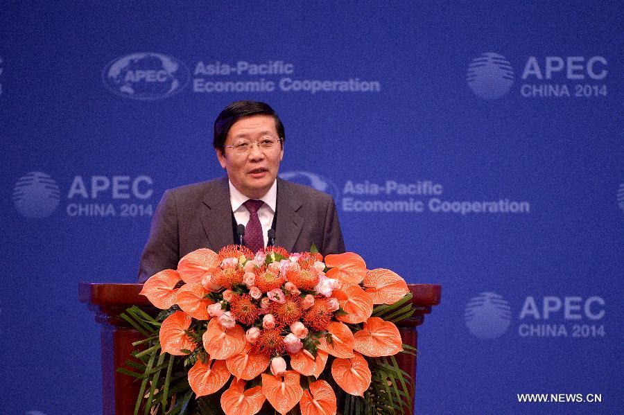 Chinese Finance Minister Lou Jiwei presides over the APEC (Asia-Pacific Economic Cooperation) 2014 Finance Ministers' Meeting in Beijing, capital of China, Oct. 22, 2014. (Xinhua/Li Xin)