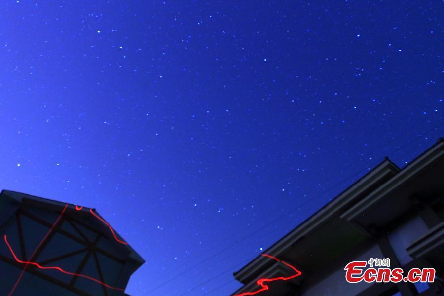 The Orionid meteor shower is visible in the sky of Southwest China’s Chongqing municipality on Tuesday night, October 21, 2014. There were as many as 25 meteors per hour at its height during the period between 22:00 and dawn, according to the Beijing Planetarium. [Photo: China News Service/ Zhao Junchao]