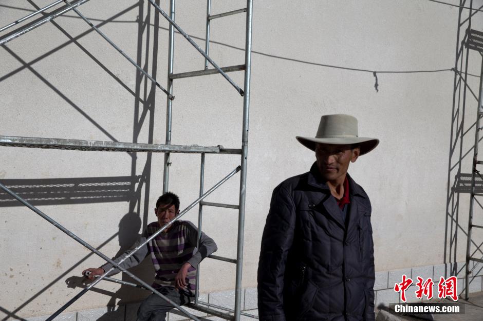 Two workers in a primary school in Dangxiong County of Lhasa, capital of southwest China's Tibet Autonomous Region, Sept. 28, 2014. (Chinanews.com/Liu Guanguan)