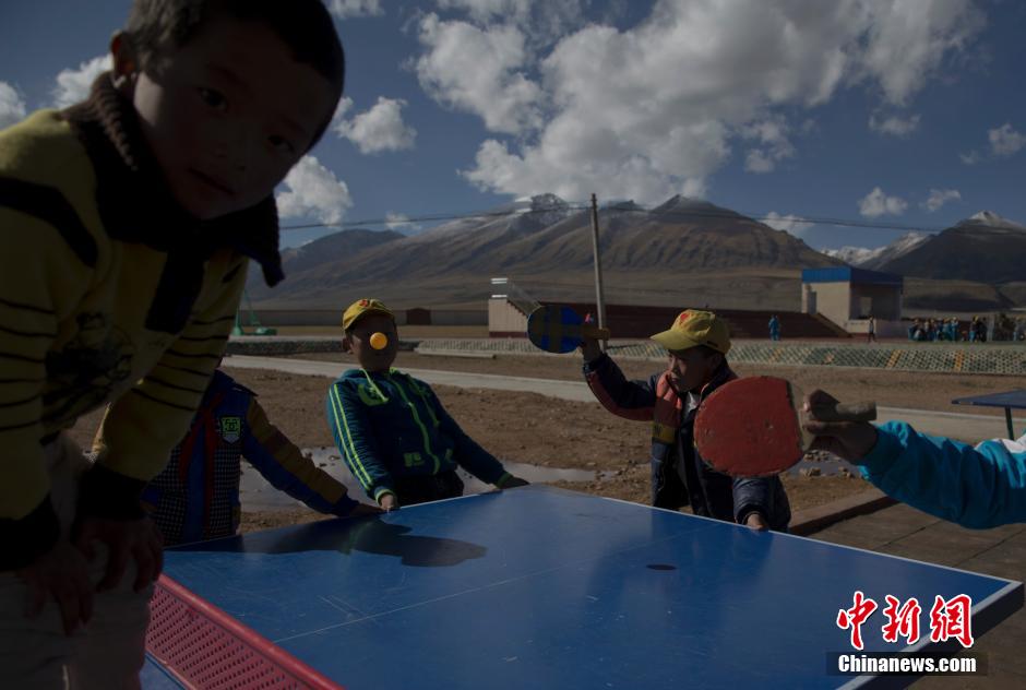 Children play table tennis in a primary school in Dangxiong County of Lhasa, capital of southwest China's Tibet Autonomous Region, Sept. 28, 2014. (Chinanews.com/Liu Guanguan)