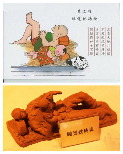 In Shaanxi, when it becomes extremely hot in summer, peasants would rather rest their heads on a brick or a stone than use a conventional pillow when lying down for the night. Local people sometimes refer jokingly to this way of going to sleep as something that is even more precious than gold, a testament to their ardent love for this strange habit.