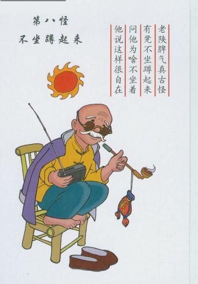 It is a long-standing habit in Shaanxi Province (or the Central Shaanxi Plain) for people to squat down when doing many everyday activities, because men are accustomed to having all the three meals by getting together with others in small groups while holding a bowl and assuming a squatting position, a process that may last well over 1 hour, and people love sitting in the sun in winter by squatting on the leeward side of anything usable as a shelter from the wind and playing chess in a squatting position. This habit is often referred to by people from elsewhere as "People would rather squat than sit on something." It is in essence a habit developed over time as a way of taking a rest after getting tired from work.