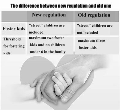 Under the current regulation, a family is allowed to foster three kids at most. The new regulations also classify "street" children or child beggars as foster kids.