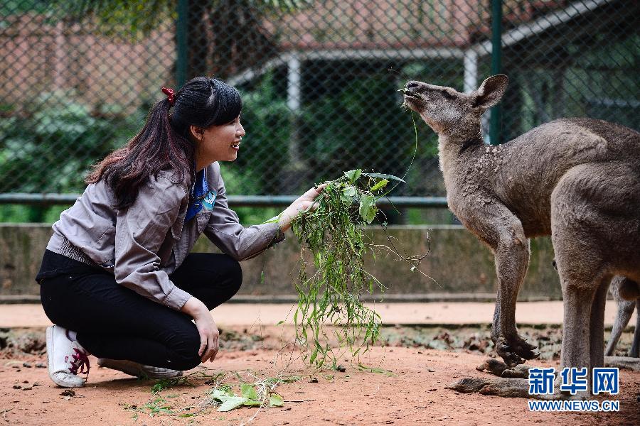 Chen Rong breeds a kangaroo - Sept. 17, 2014. (Xinhua/Liu Jinhai)