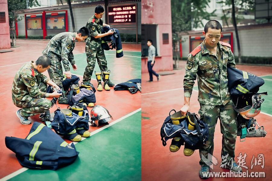 Recently, a fire brigade in Wuhan, capital of central China's Hubei Province, released a group of photos of the post-1990s firefighters. The photos recorded the training and daily life of the firefighters. (Photo/cn.hubei.com)