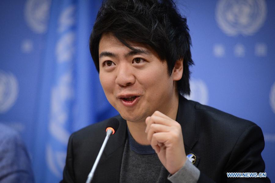 Pianist Lang Lang, who is also a UN Messenger of Peace, speaks during a press conference prior to a concert entitled "Lang Lang and Friends" in commemoration of the UN Day, at the UN headquarters in New York, on Oct. 24, 2014. The United Nations celebrated its 69th birthday with its messenger of peace, world-renowned pianist Lang Lang performing at a concert on Friday evening. (Xinhua/Niu Xiaolei) |