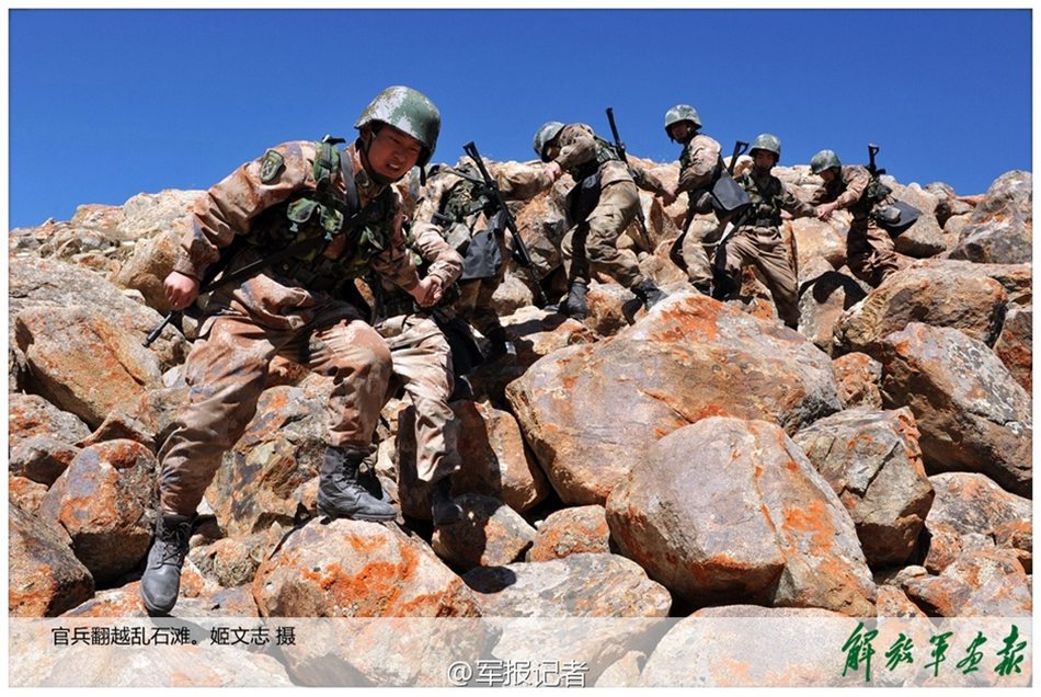 Soldiers climb over a rock mountain. (PLA Pictorial/Ji Wenzhi)