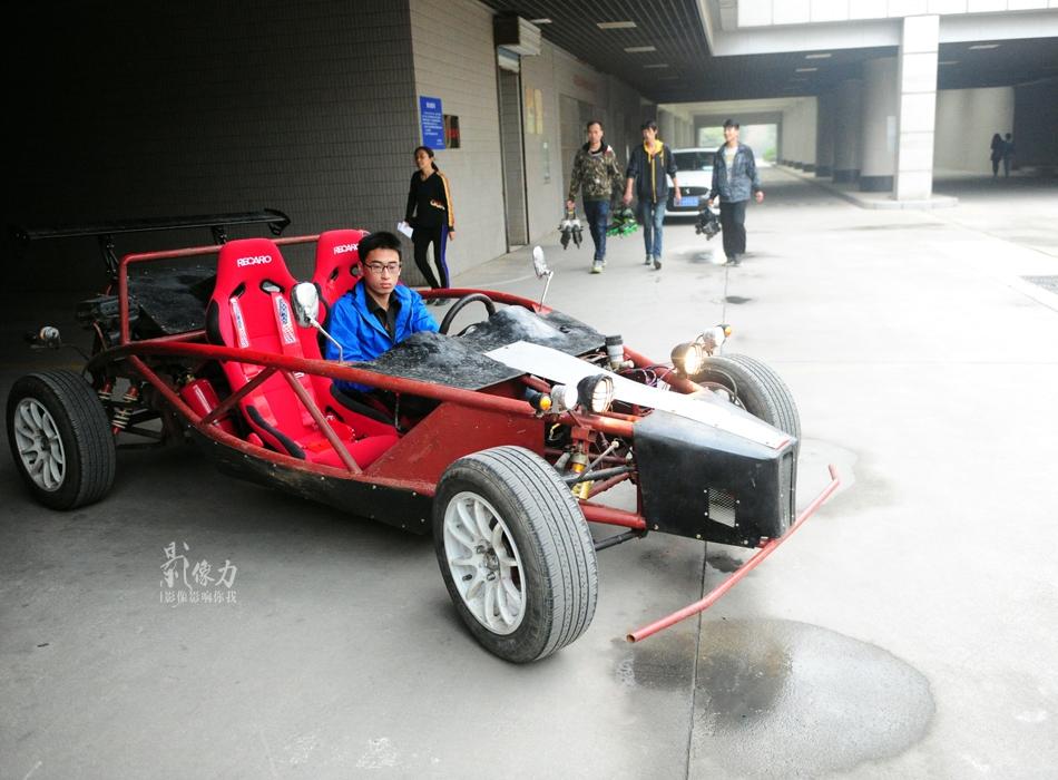 "Ever since I was a kid I've loved all kinds of cars," says Liu Jin, the designer of a racing car. "After I went to college, I started to build my own racing car." After Liu came up with his idea, he soon got support from his classmates.