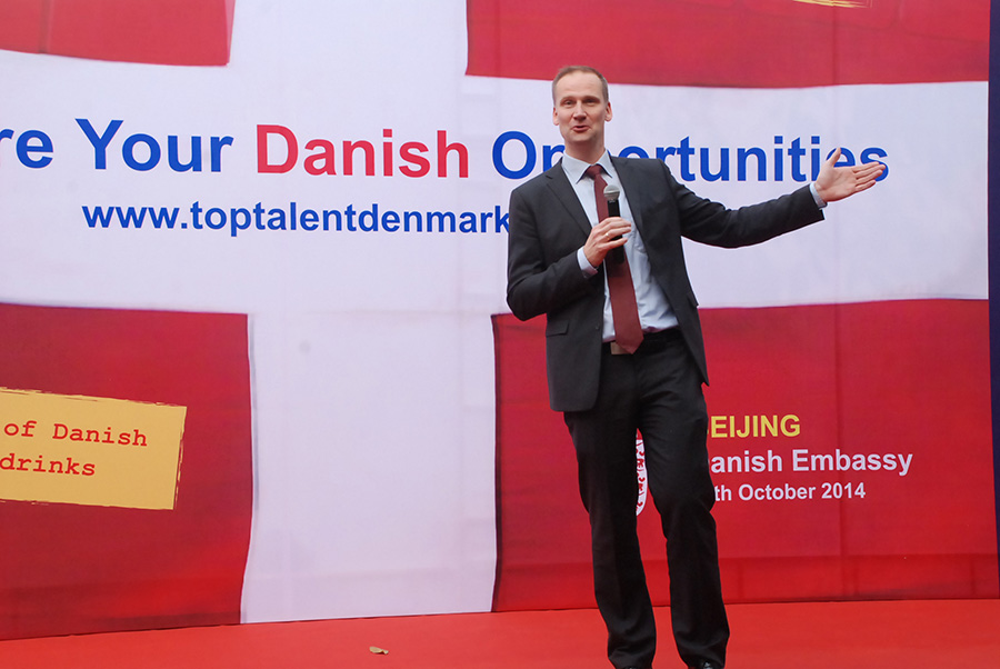 Lars Bo Larsen, the deputy head of mission and Counselor of Denmark Embassy, gives an opening speech. (People’s Daily Online/Wang Ao)