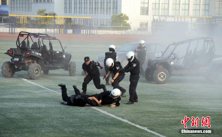 A comprehensive anti-terrorist drill is held in Hefei, central China’s Anhui province on Oct. 26, 2014. Over 600 emergency personnel and 77 emergency vehicles from eight emergency response forces, including special police, armed police, fire department, medical aid, etc., participated in the drill. (Chinanews/Zhang Yazi) |