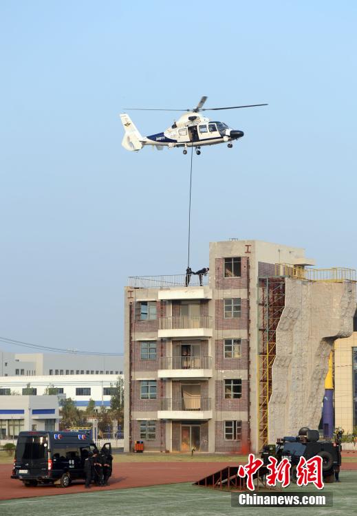 A comprehensive anti-terrorist drill is held in Hefei, central China’s Anhui province on Oct. 26, 2014. Over 600 emergency personnel and 77 emergency vehicles from eight emergency response forces, including special police, armed police, fire department, medical aid, etc., participated in the drill. (Chinanews/Zhang Yazi) |