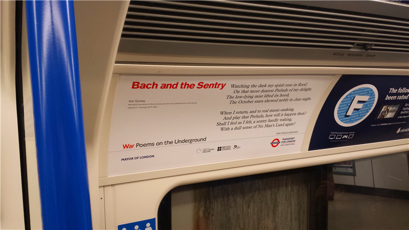First World War poems appear in the London Underground. (People's Daily Online/Bai Tianxing) |