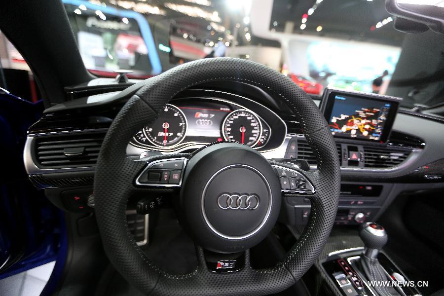 The interior of an Audi R8 V10 Plus is seen on the media day of the 28th Sao Paulo International Motor Show in Sao Paulo, Brazil, on Oct., 29, 2014. The exhibition, the most important of its kind in Latin America, will be held from Oct. 30 to Nov. 9, expecting more than 750,000 visitors, according to the organizers. (Xinhua/Rahel Patrasso) |