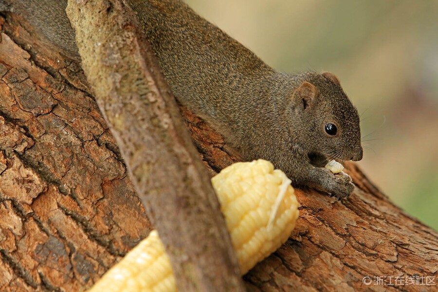 A squirrel in West Lake of Hangzhou enjoys the corn fed by a tourist on Oct. 27, 2014 in east China's Zhejiang province. (Photo/zjol)